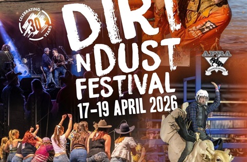 Julia Creek Dirt n Dust Festival 17 Apr 2026 Julia Creek Dirt n Dust Festival is an epic jam-packed three days of fun and entertainment in Queensland Australia. Experience the incredible outback hospitality when the tiny North West Queensland outback town of Julia Creek explodes from 400 people to 3,000 in one weekend!The Festival kick starts with the adrenaline-pumping action of the Dirt n Dust Rodeo and live concert. Tagged as: , Exhibitions & festivals